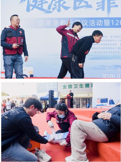 为积极响应国家急救日倡议,全面提升公众自救互救能力,进一步完善城乡医疗急救体系建设,推动“社会大急救”事业高质量发展,2026年1月16日,由四川省医院协会、致公党四川省委会、攀枝花市卫生健康委员会联合主办,四川省医院协会急救中心(站)管理分会、攀枝花市紧急医学救援中心、攀枝花市中西医结合医院共同承办的“健康‘医’靠 救在身边——国家急救日倡议活动暨120急救科普大课堂公益培训”在攀枝花市中西医结合医院融和广场举行。攀枝花市东区社区工作人员、攀枝花市消防救援支队消防员、现场群众等共计100余人参与了培训。