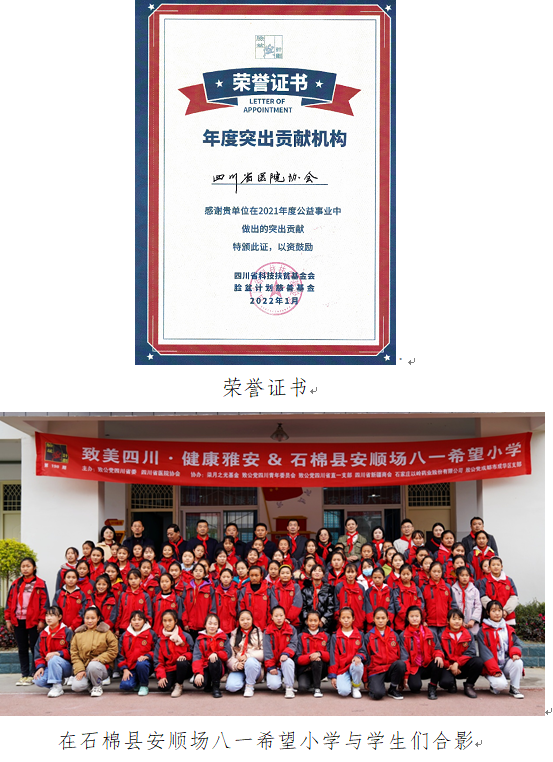 1月20日,四川省科技扶贫基金会授予四川省医院协会“年度突出贡献机构”荣誉证书。