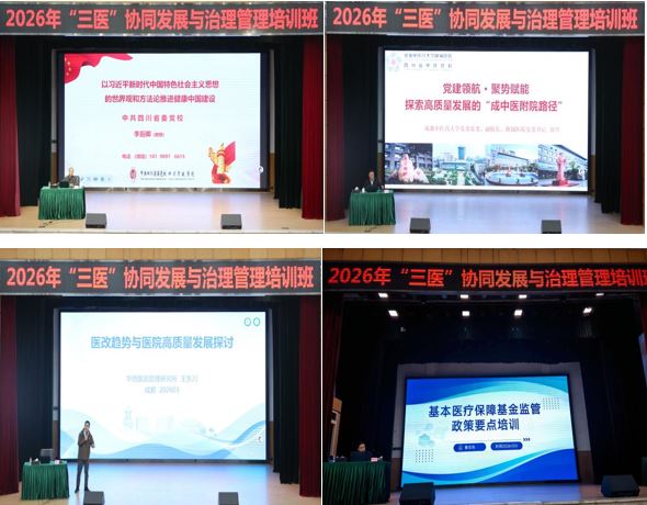 2026年3月26日至29日,由四川省医院协会委托中共四川省卫生健康委党校举办的2026年“三医”协同发展与治理管理骨干培训班在成都成功举办。来自全省三级医院分管医务、医保、医药工作的领导、相关科室负责人及管理骨干共115人参加培训。